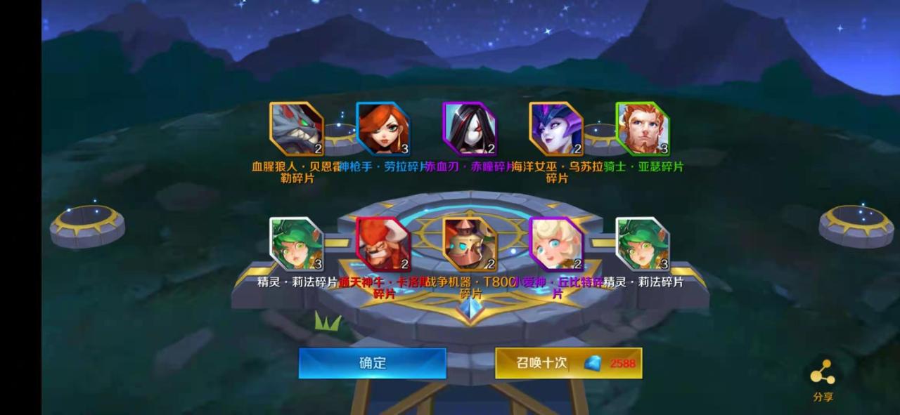 奖励:可以抽到所有级别英雄的碎片,其中也包括MAX级别,不过抽到完整英雄的概率极小,大部分给的都是碎片。