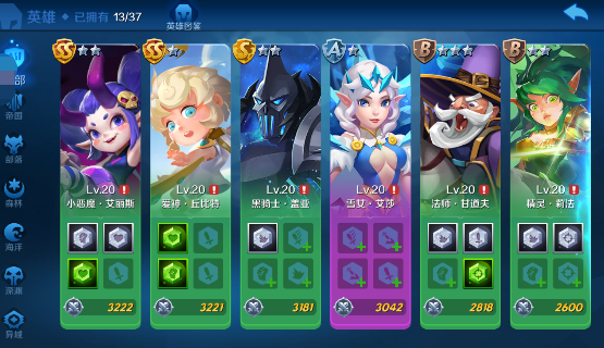 1、所需英雄:推荐使用的英雄为法师甘道夫、小恶魔爱丽丝、雪女艾莎、精灵莉法、黑骑士盖亚,都是游戏中的初始英雄。
