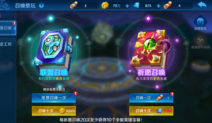 3、抽到重复的英雄可以转化为英雄碎片,英雄碎片可以用来给英雄升星使用。
