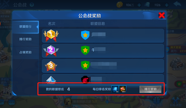 5、6—10名:联盟战争排名奖励50钻石、2500联盟币;联盟战争参与奖10钻石、2500联盟币、5000金币。