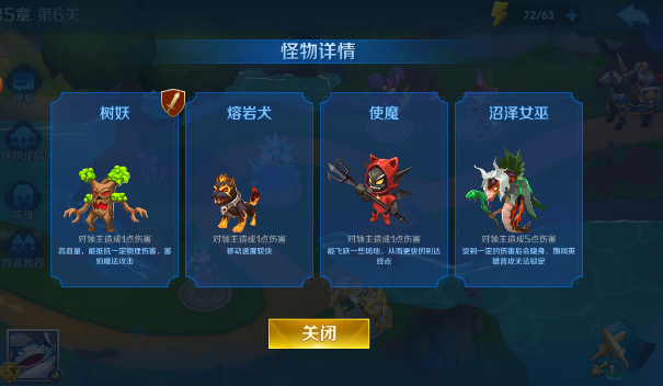 3、树妖:对领主造成1点伤害,高血量能抵抗一定物理伤害,害怕魔法攻击,因此推荐使用初始英雄小恶魔爱丽丝作为主要输出。