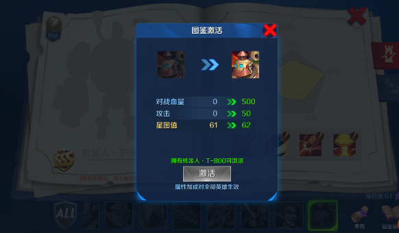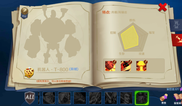 2、机器人T800的核心天赋是“充能”,在对战战斗中,受到伤害时有几率为自己充能,恢复生命和怒气值。如果大家以机器人为主力的话,这个天赋是必须学习的。