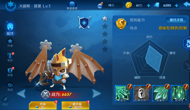 1、塔防能力:塔防能力一颗星。