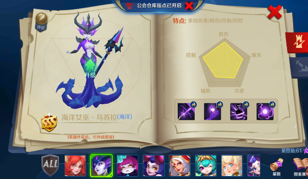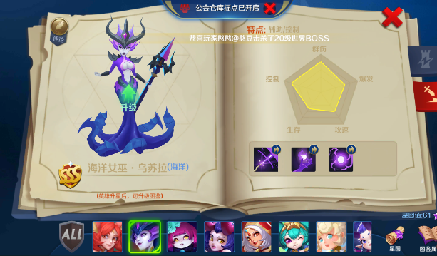 2、虽然海洋女巫的强度很高,但是该英雄的入手难度较高,如果得到了的话是非常推荐大家练一个的,毕竟是世界BOSS不可或缺的存在。