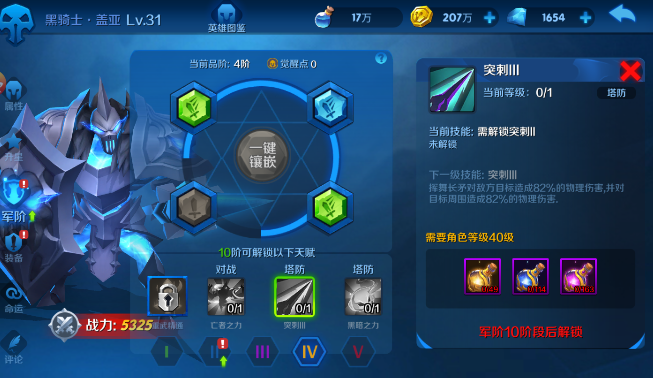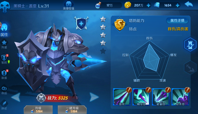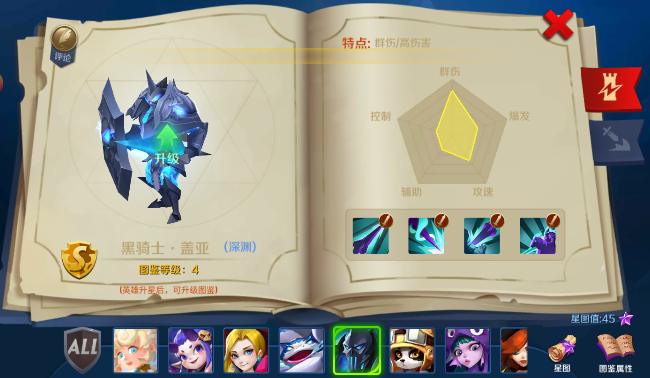 1、黑骑士盖亚最为突出的一点就是竞技场能力强,有着非常高输出的同时还有很强的回复效果。最为关键的是获取难度低,这样就比其他英雄更容易升星,算是平民战神的存在。