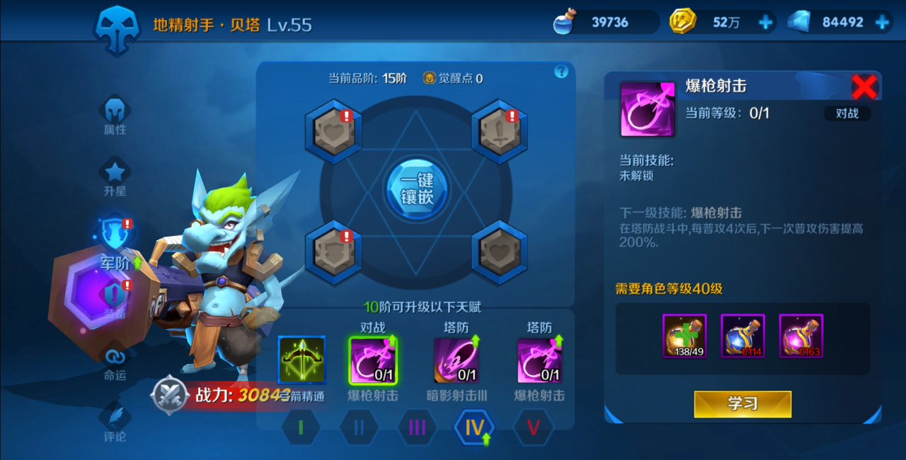 3、地精射手是是不缺伤害的,但是自身的名字太低,因此圣器主要选择加命中的。推荐大家培养一个地精射手,无论是BOSS战还是塔防都有很好地表现,并且还能克制游戏中大部分的英雄。