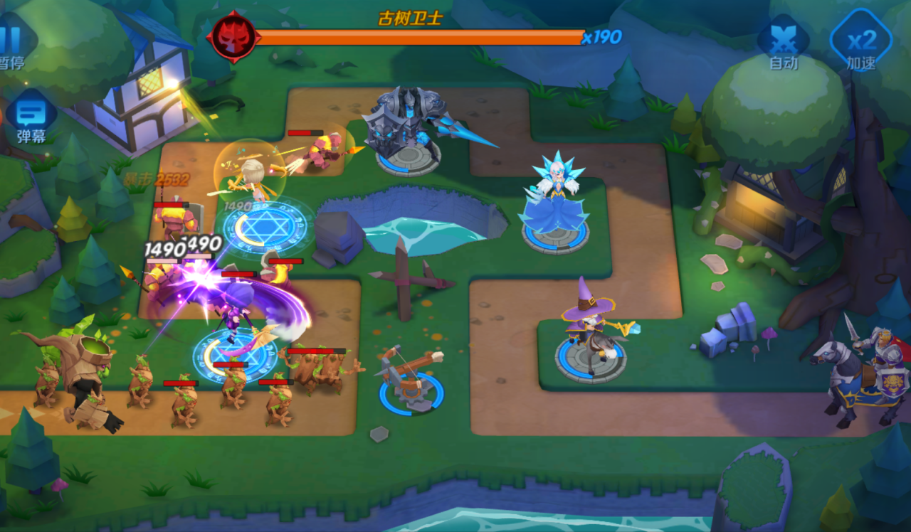 2、过关分析:古树卫士有着两百行血,在击杀前排之前一般是攻击不到古树卫士的,因此后期队伍压力大。