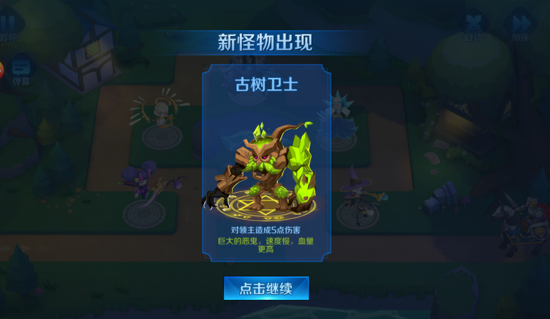 1、古树卫士:对领主造成5点伤害,巨大的恶鬼,速度慢,血量更高。