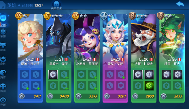 1、所需英雄:推荐的五个英雄为爱神丘比特、法师甘道夫、小恶魔爱丽丝、雪女艾莎、黑骑士盖亚。