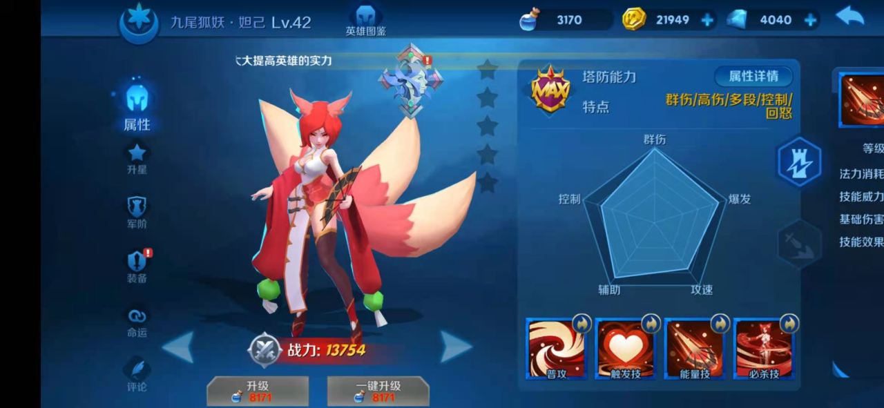 2.这套阵容中主要的AOE靠妲己和孙悟空打出,同时妲己的能量技还自带击退效果可以防止一些一速较快的怪物直接突破前线。