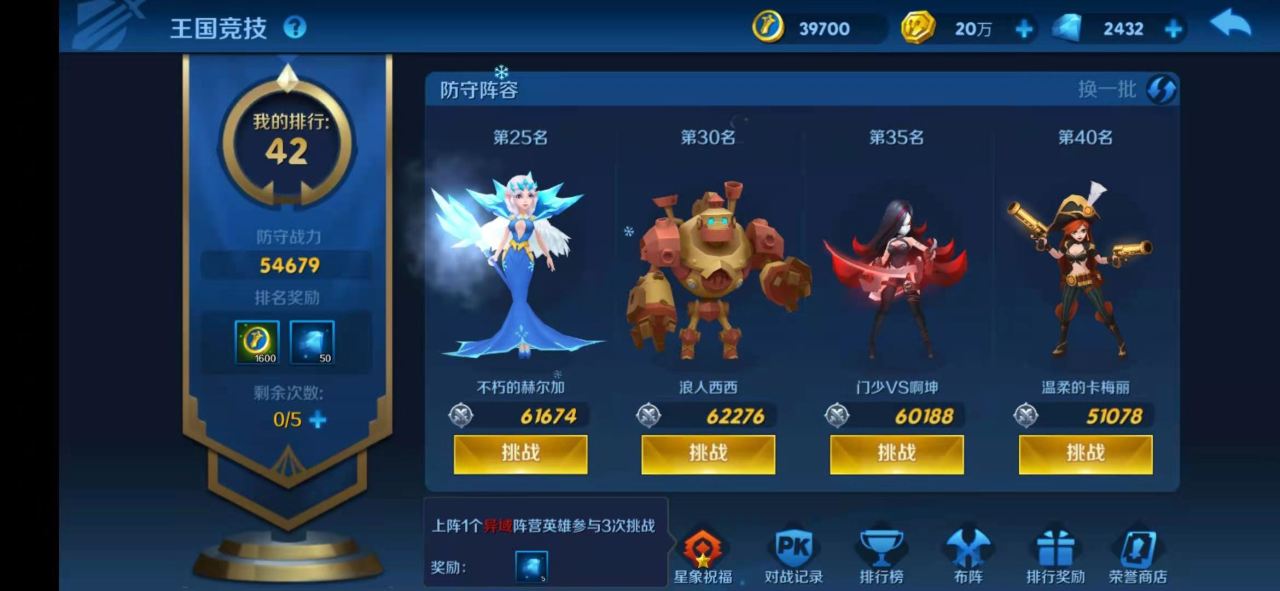 因为星象祝福对王国竞技的对战有一定程度的影响,所以当天上阵的英雄也可以考虑变换一下,根据属性加成最高收益来。