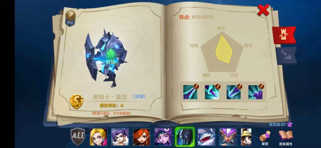 4.暗影突袭,必杀技,猛的发起冲锋,对屏幕 任意一条直线范围内的敌人造成275%物理伤害并击飞。