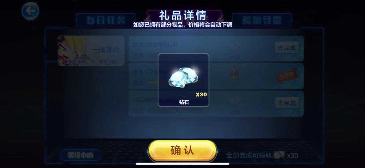 免费获得钻石的第一种方法就是通过升级以及做任务的方式,玩家的基础等级为一级,每提高一个等级都会获得对应的钻石奖励,另外在日常任务活动中,玩家完成指定的任务,也是可以获得钻石奖励的。