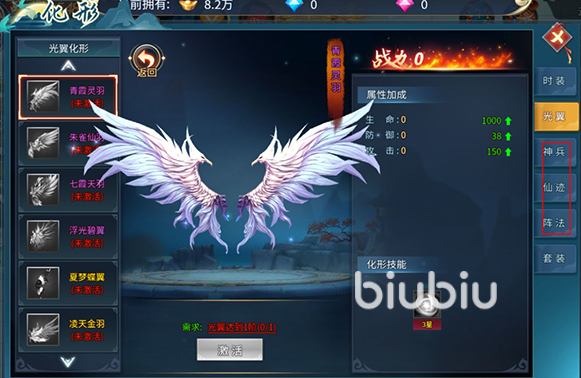 除了特色时装外游戏还有光翼,光翼除了能让玩家的外形更加炫酷外,还拥有其特殊的属性和技能,大家也可以利用光翼升星石对其进行升级,除了光翼玩法外大家也可以对阵法进行研究,不同的阵法能给怪物造成不一样的效果。