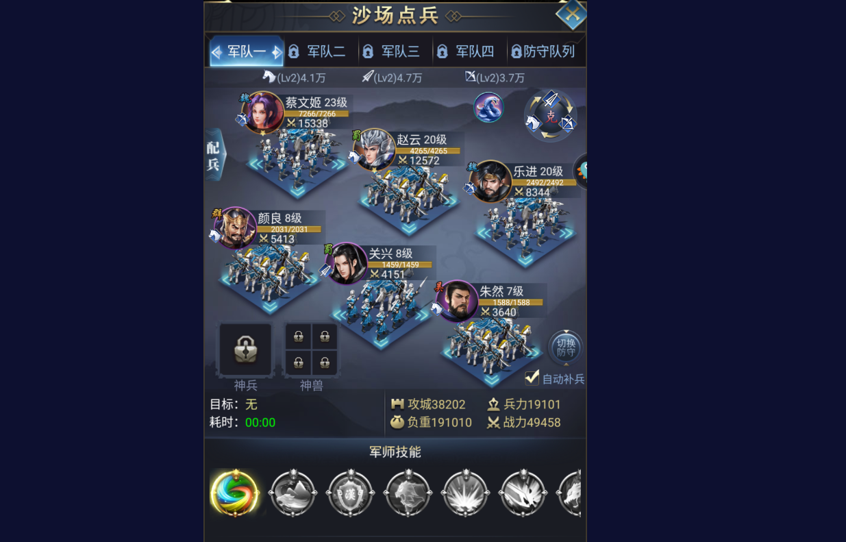小编在排兵布阵的时候建议大家选择三攻两防一辅助的阵容,三攻时各个兵种都来一个武将,两防选择步兵和骑兵武将,辅助选择弓兵武将。这样虽然对玩家们的武将整体水平要求比较高,但这也是很多大佬玩家都在使用的阵容搭配。
