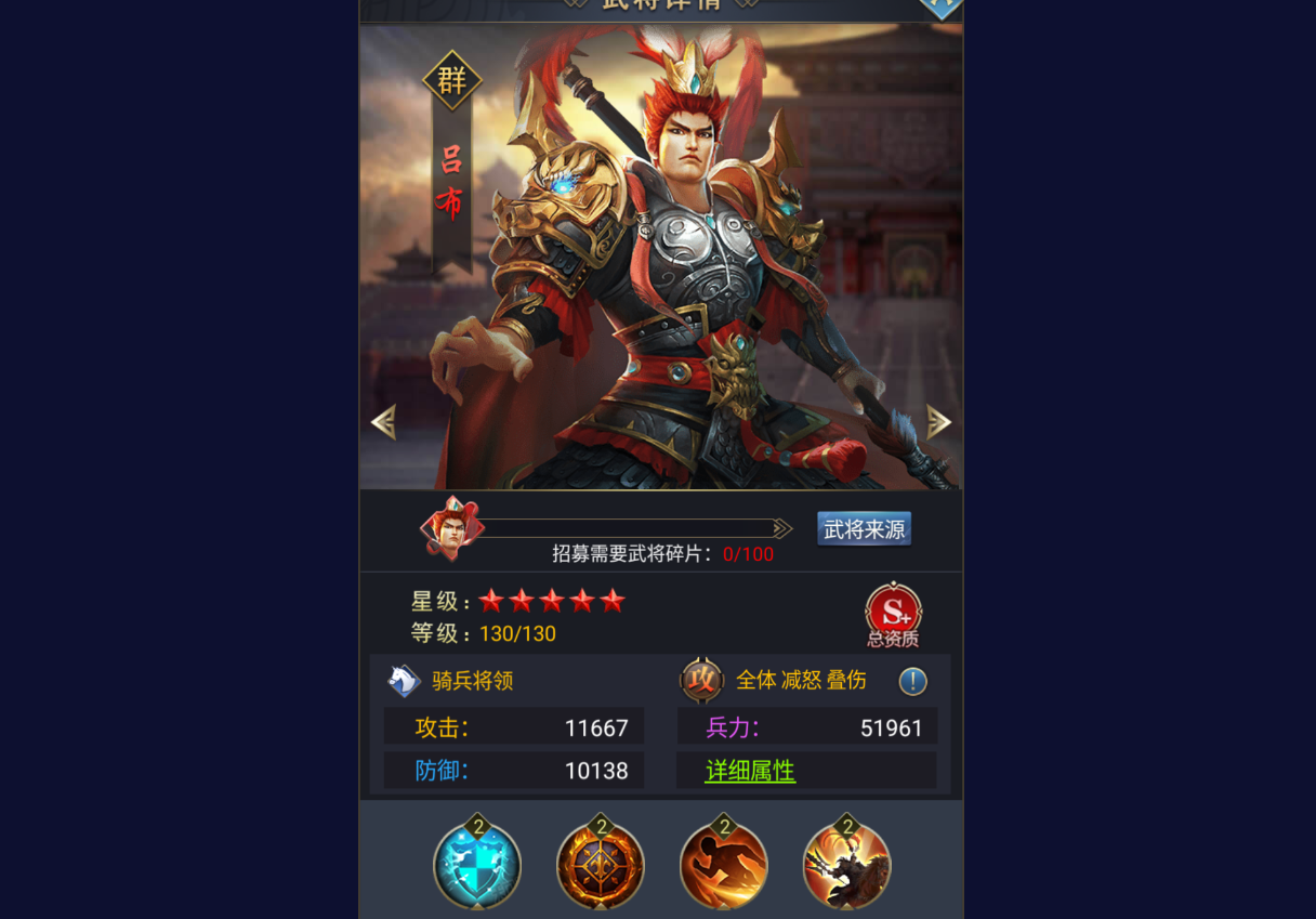 在所有的红色武将里面一共分为三种,攻击、防御和辅助,我们先讲攻击类武将,攻击类的武将基本上都是攻击力非常的高,技能也都是尽量让自己的伤害变得更高,偶尔还会有一些技能会让敌方进入一种持续掉血的状态,还有一种技能的类型就是减少对方的怒气增加我方的怒气,使得我方的技能释放更频繁从而打出更多的伤害。