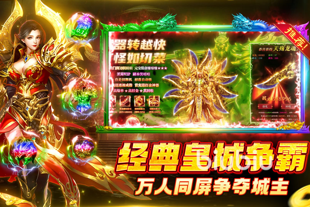 经典皇城争霸,万人同屏共同争夺城主宝座。6亿切割,全图80倍积分掉落,满屏福利轻松领取。更有上线就送神装福利,海量元宝送送送!再现当年攻沙之战,叫上好友再聚攻城!