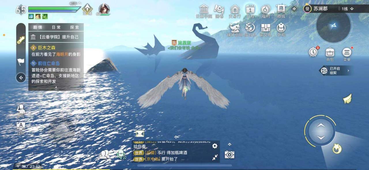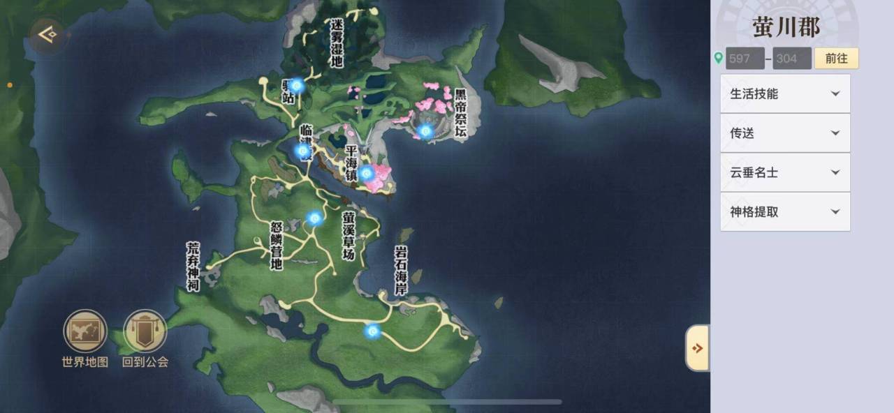 打开游戏地图,首先我们可以排除的区域是灵虚和萤川,这两个地方看地图的话好像都有很大一片海域,其实我们过去就可以发现,竟然有个空气墙,压根没法往海面上跑,所以找沉船什么的是痴心妄想啦!