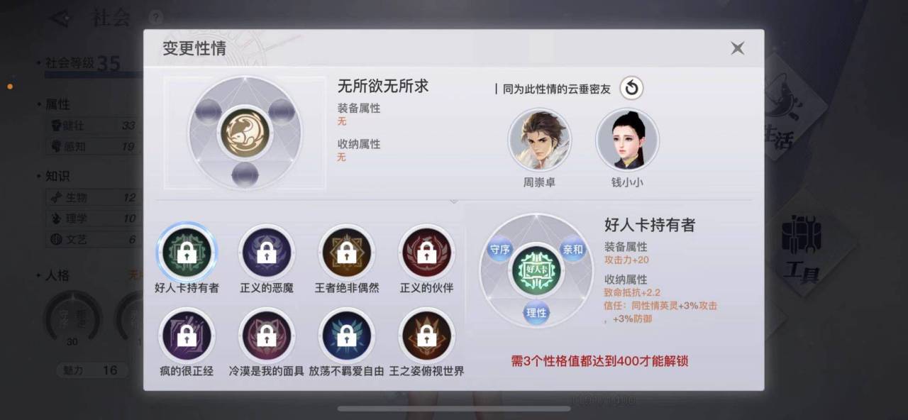 人格都能提供固定的攻击力和英灵之间的属性加成,其他的6种人格提升的是防御型的数值,有兴趣的玩家可以尝试效果,另外我在人格界面中会显示出我们和其他玩家的相似度。