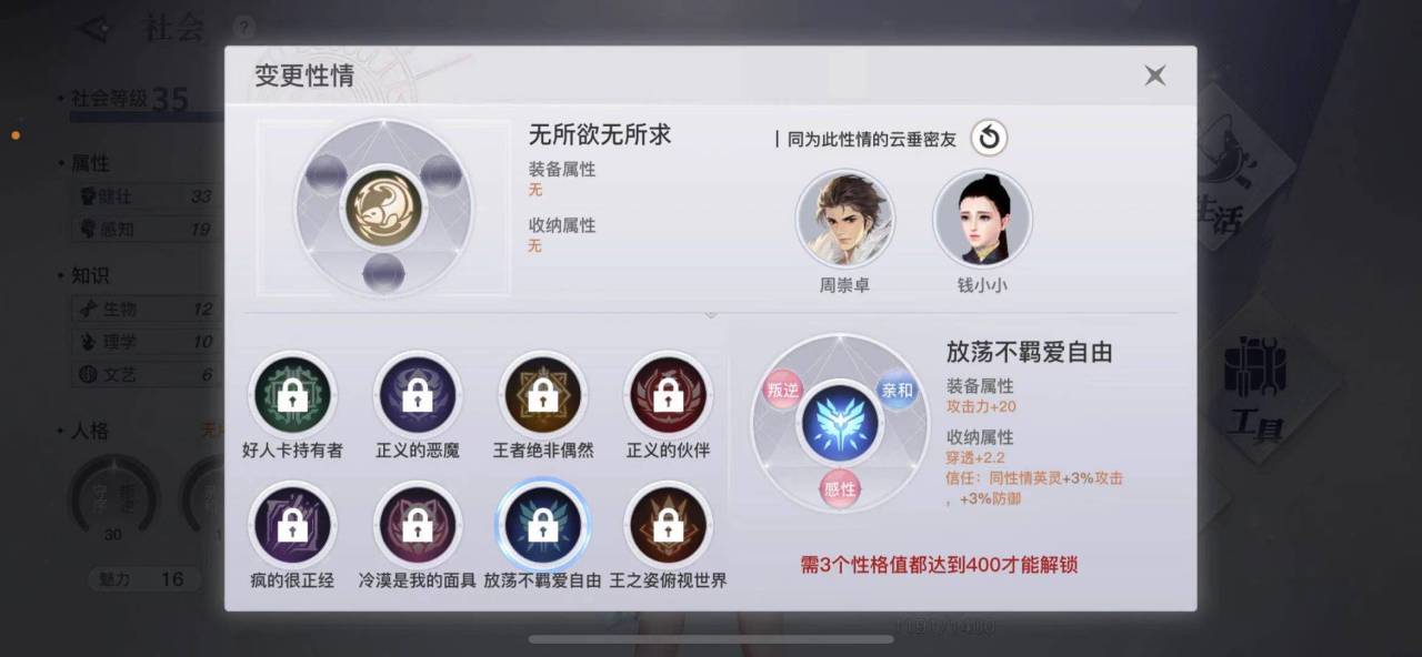 1.细心的玩家在刚接触游戏的时候就会发现,面对某些选项的时候会出现性格数值上的增加,为了达到上述的两种人格数值,在选项的时候一定要追求感性和叛逆,千万不要理性思考。