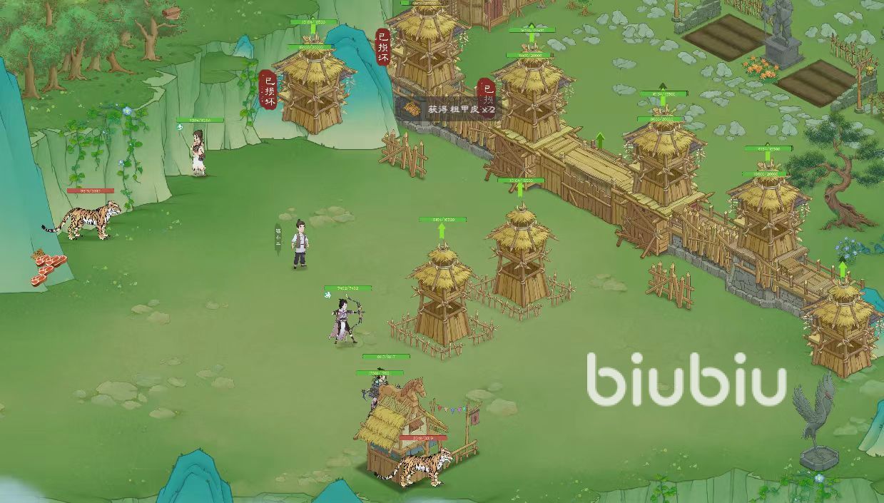首先大家需要做的是建设箭塔,箭塔可以有效地保卫山谷,箭塔能自动发射弓箭,击杀附近野兽,保护生产。接下来就是勇士,勇士是保卫山谷很重要的一环,在勇士界面中选择好出战勇士之后,任命队长,另外的勇士会自动跟随队长进行移动。通过游戏界面左下角的选中队伍按钮,就可以进入到勇士的操控界面,在这里能够控制勇士进行移动和释放技能,吸引附近野兽注意,战斗中还能使用药品来恢复生命值。