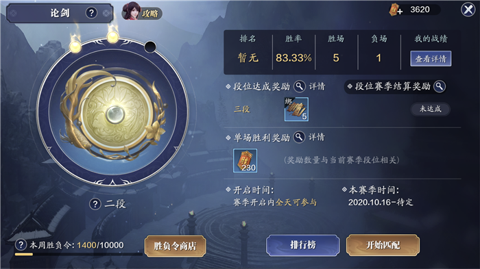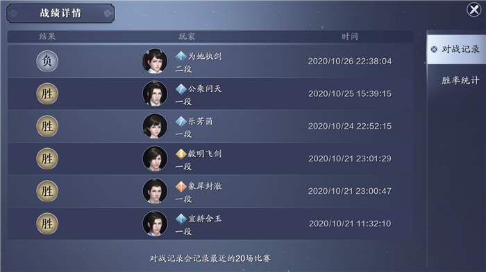 在一至九段每赢得一场比赛就会直接增加一颗玉石,剑字段位以上就会出现积分条,输赢都会减少和增加相应积分。