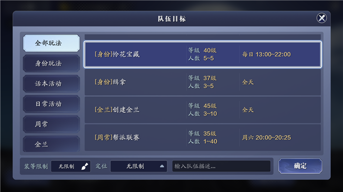 怜花宝藏任务有一定的要求,需要玩家达到40级以上并且5人组队,这里要注意必须是满5人队才能开启任务。