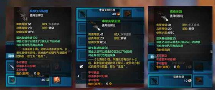 而1个中级矢袋王屋,可使用五十次,就是说,能够打出五十发弓箭;