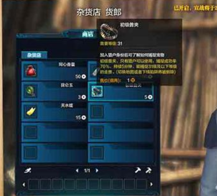 当大侠们变成猎人后,得到狩猎技能后,就能在每个区域杂货铺购到低级兽夹;