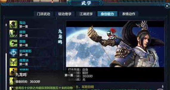 大侠们在某个地址能够通过技能【九龙吟】启动来发觉周遭50米以内有无小动物的出现。