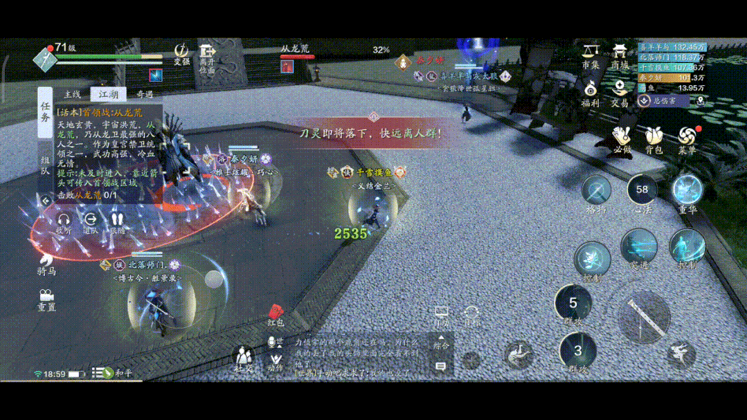 沧浪剑海:孤鸿积蓄力量后对四周连续带来巨额的伤害,与此同时,召唤两道沧海浪,击飞沿途一切对手。