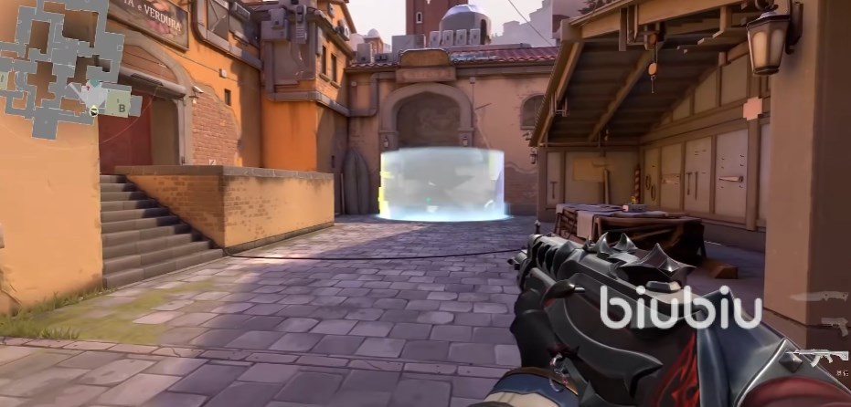 作为进攻方我们一般将绊线设置在防止敌人绕后的位置,从我们经过的道路上放一个。也可以封得远一点打地图控制,如图所示的方法,当我们去打B的时候,a点防守队员会压出来,靠近绊线时只有打掉或者触发2个选择,打掉触发都会有音效提示,在这里放一个能确保敌人没有压出来。注意放的时候不能太低也不能太高,太低别人直接跳过去了,太高蹲着也可以过去。这里有一个小技巧,在放线的时候下蹲,然后绊线的极光和我们的视线平齐就可以放,这种绊线敌人就是跳不过去的。防守一方的时候,将绊线放在对方要进入包点的路线上,或者是一些其他的过点上,在绊线下方放一颗烟雾弹,这样当敌人触发绊线的时候,我们可以穿烟看到对方。