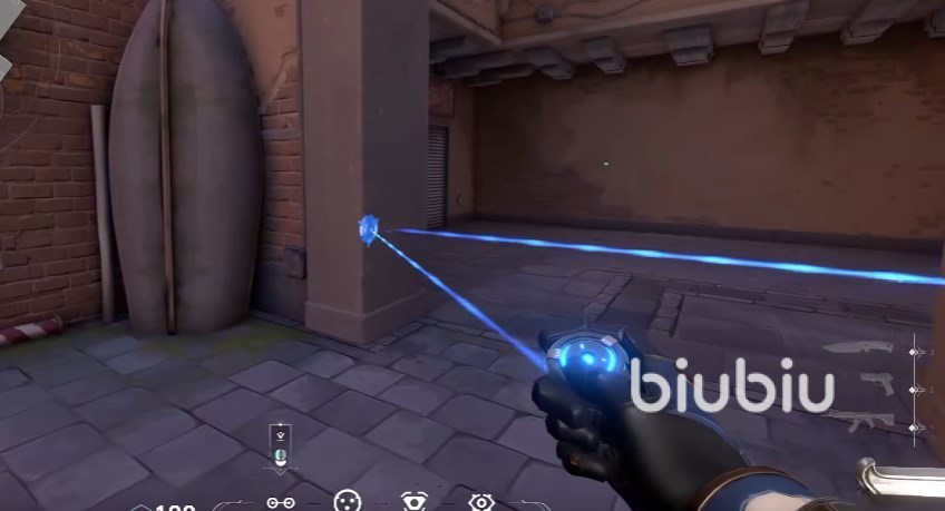 接着我们来看零的C技能,可以在墙上横放一个绊线,也可以放在地上,当然大多时候还是推荐放在墙上。当敌人被绊线绊倒的时候,敌人会被穿墙显示整个轮廓,有点像是红外夜视仪的那种感觉,会被持续标记。如果绊线没被敌人打掉的话,敌人也会受到一个震荡的效果。可能小伙伴会疑问敌人看不到绊线吗?其实这个绊线远看是隐形的,只有在靠得很近的时候才会显示出来并且有声音。