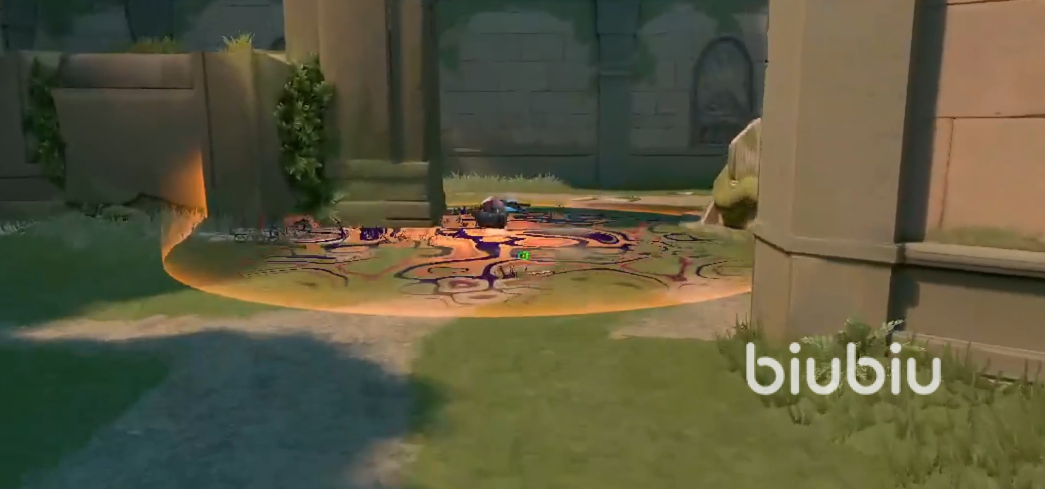 之后是他的二技能,这个技能是一个传送类型的技能,该技能释放时可以在原地制造一个传送锚点,只要在这个锚点范围内就可以随时随地返回锚点位置,在传送回去之后还能捡起锚点再来一次,尤其是在起不了大枪的对局中,这个锚点是很好用的。