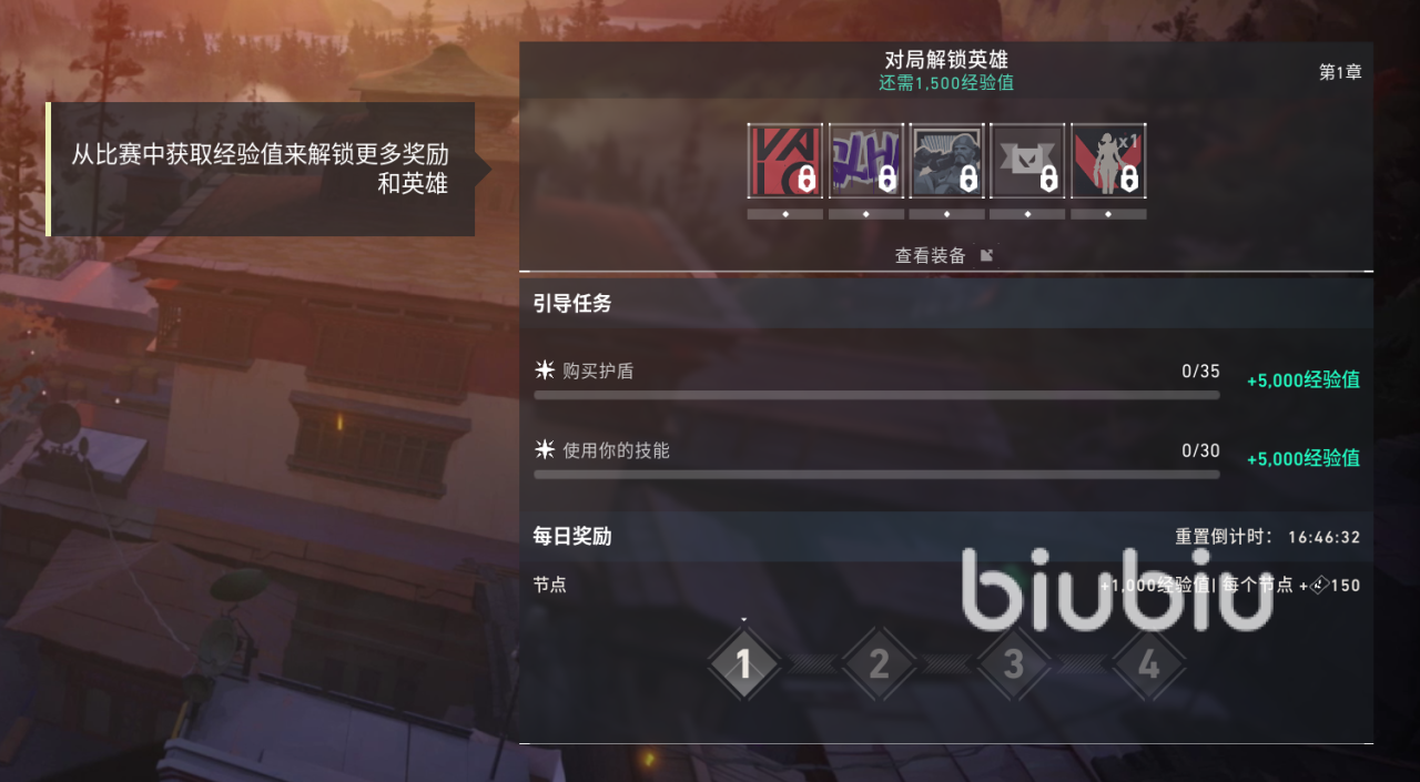 游戏内通行证的升级是玩家们免费获得升级武器皮肤r点的唯一途径,所以如果能在最短的时间内完成十个章节的通行证任务还是很困难的,目前游戏内只要完成对局就可以获得额外3%的经验,新手的话,按照引导完成购买护盾、使用角色技能,按照每个节点的指定任务,在游戏内做出相应操作,可以获得其余大额经验。