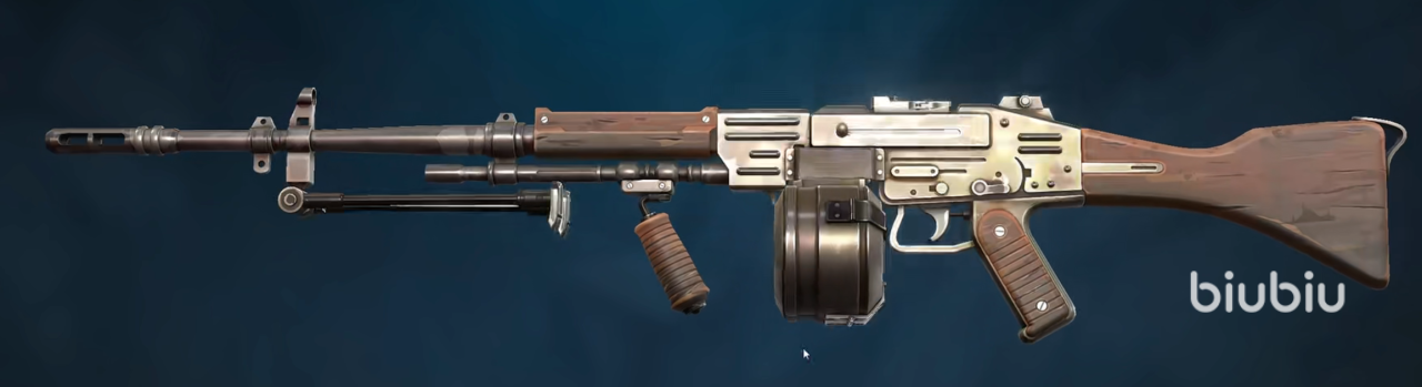 当然除了上面的介绍,这个武器的原型作为一款著名的武器也会有一个复古的皮肤给玩家,在游戏里面这个皮肤就如上图所示,看到之后是不是勾起了很多玩家的回忆了呢,这把枪也是非常强力的机枪的,在游戏里面也是陪伴了很多玩家征战四方了,大家当然也可以再用回这个皮肤,手感上也不会相差太多的。