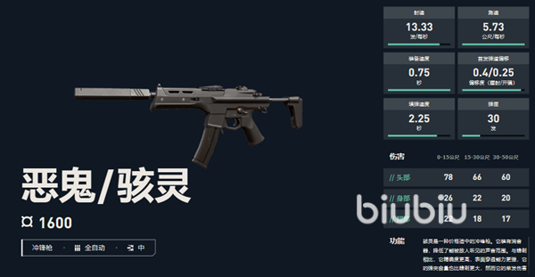 在游戏的对局中需要消耗1600块才可以解锁这把武器,所以在游戏的前三回合不是太建议去选,第四回合开始可以考虑。恶鬼自身带有瞄准镜,开镜之后会降低射速,但是相对而言的精度能够获得提升。作为冲锋枪的恶鬼也自带有消焰器,一定程度上更加保证了稳定性。