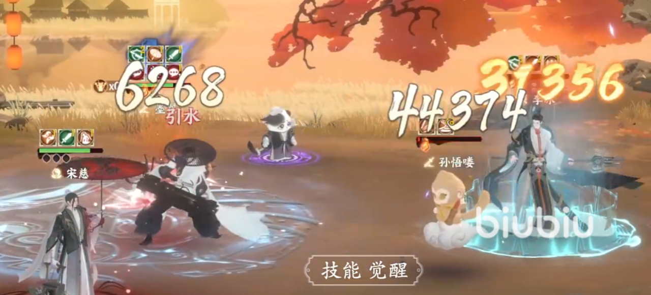 他的觉醒技能在战斗开始时,获取到回溯次数,主动释放会获得1层“洗冤”,并为目标队友添加12%暴击率增加、15%群体伤害提升效果到战斗结束,若自身在持有回溯次数的时候使用,还会让群体伤害提升效果翻倍,己方任意队友离场时,若自身带有次数会使使得离场者回溯到小开始时的生命状态,若离场者不是自身则使其使其失去所有真元,自身拿到1真元和1层“洗冤”。