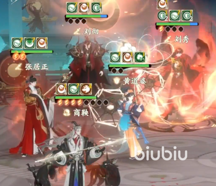 当敌方的“垦令”被全部移除后,会给敌方提供易伤效果,他的技能觉醒可以将自身的真元主动转移给队友,并提供高额增伤,己方在回合开始时,也会提取商鞅持有的真元,他和李斯天命效果为若开局己方携带至少2位输出名士,会让李斯的治疗池填充料大幅提升,己方受到攻击时,李斯也会提取治疗池,为己方治疗提升续航能力。