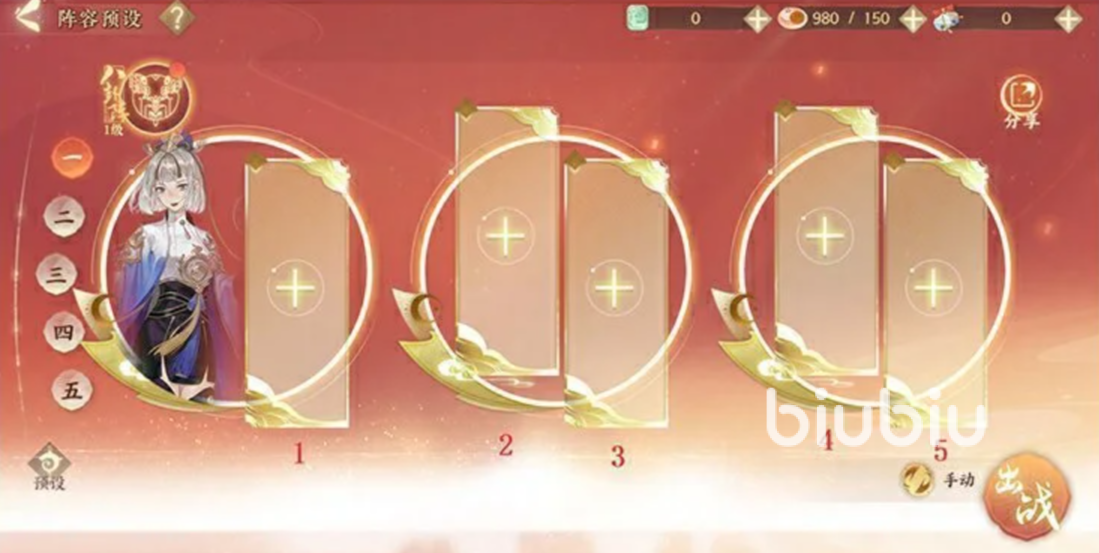 主动觉醒也有三个不同特效,第二个大回合开始可使用,给己方开启“军阵”,给敌人开启“迷阵”,并给以上两个特效持有者添加阵眼,根据队内持有的阵法,改变军阵和迷阵的初始变换方式。