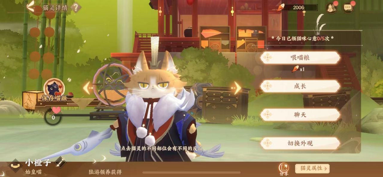 在游戏的主页面玩家选择喵居建筑,进去之后在猫灵列表中寻找到始皇喵,点击详情,选择成长板块,在这里面玩家就可对其进行培育强化了,消耗一定数量的鱼鱼果,就可对始皇喵进行升级,猫咪的等级越高,它的属性加成就会越厉害,当然,如果各位玩家不喜欢始皇喵现有的属性加成的话,也是可以通过培育的方式洗掉的。