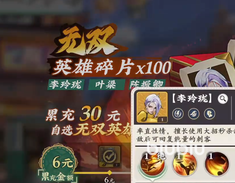 首先首充并不是随便充一两块就可以,也会有着具体的规则的。第一个档位的首充就是六块钱,只要充了就可以获得一个橙色的英雄碎片X100,也就相当于可以获得一个李玲珑,若是已经有这个角色的话,那就可以用她的碎片进行升阶,同样给力!