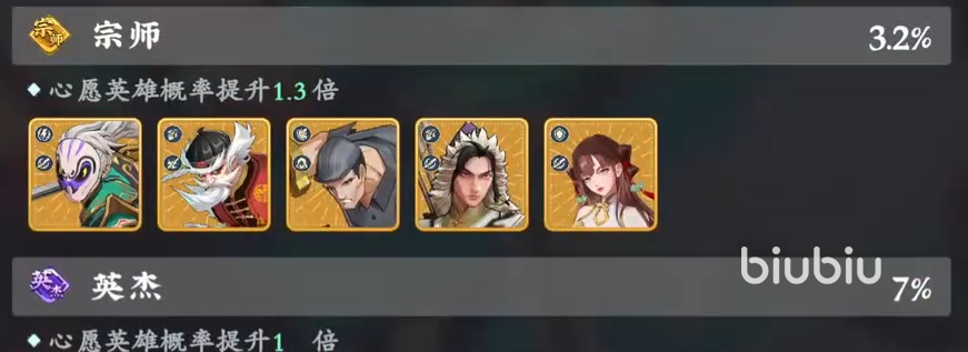另外若是选了心愿角色的话,那可以抽到的概率也会变大。至于普通卡池的话,那就是有几乎60%的概率可以拿到自己的心愿英雄。心愿的话,想要百分百获得,就要耗费60抽才能得到。每次都可以在三个英雄之中选一个,每个职业都可以从三个里面选出一个,分别是无双、宗师和一个英杰角色。也没有保证能一定抽到。