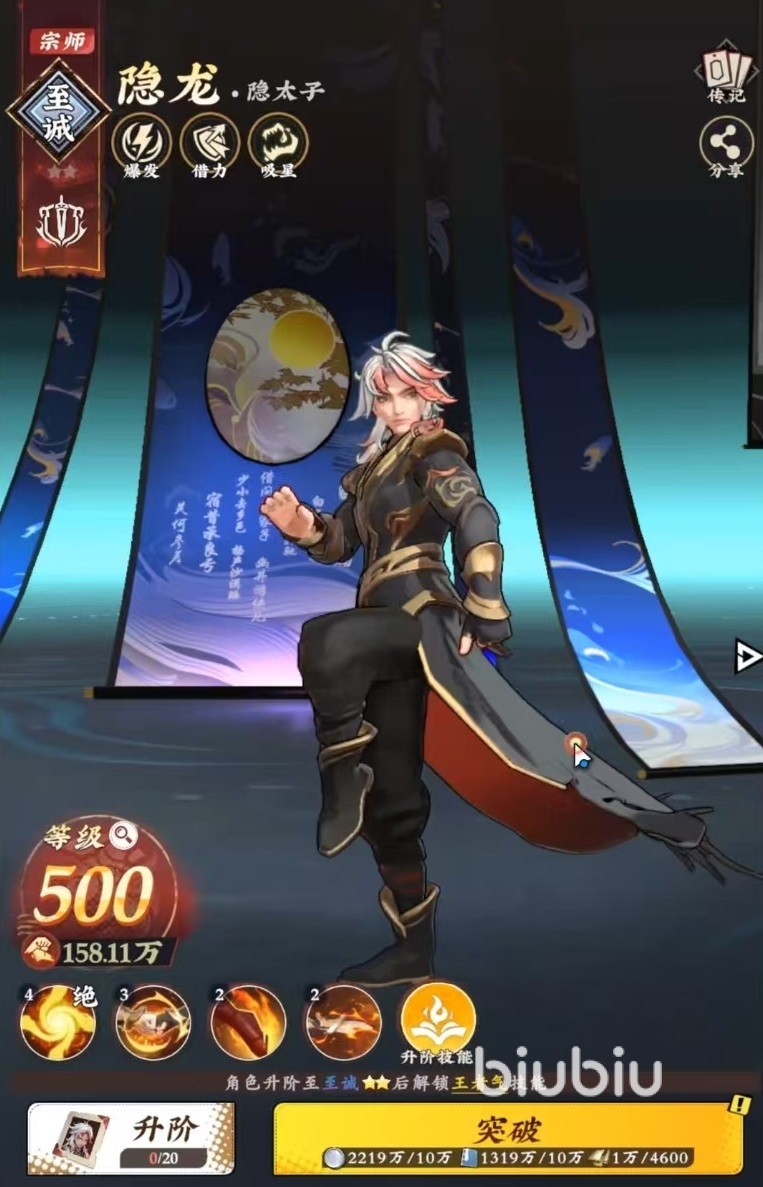 具体的变化方式就是将李三和兰姝这两个角色进行替换,换成了强度更高的隐龙和桃姬。选择这样的变化方式,是因为这两个角色在游戏中后期起到的作用越来越小,尤其是整套阵容缺乏肉盾,所以必须要选一个能够在前排扛住伤害的功能型肉盾,还要有更强的辅助。至于输出方面,原来的核心就已经够用,所以不再更换。选择隐龙是因为这是目前的强势角色,既有嘲讽又有护盾,还有眩晕以及回复,是游戏中非常顶流的前排功能型坦克。他的绝招不仅可以伤害敌方所有单位,更是能够嘲讽目标强制攻击自身,还能够对目标进行减速加以限制。