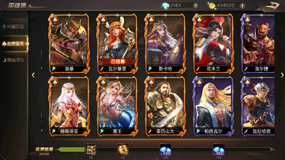 2、前排推荐:瓦尔基里、提尔、亚历山大。