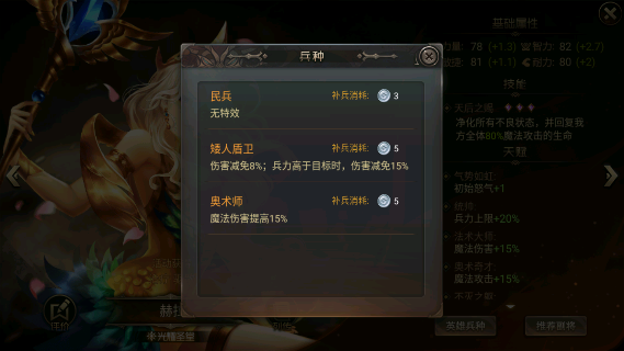 (1)更换条件:只有君主等级达到16级时,才能开启兵种玩法。每一个英雄可以选择的兵种是不一样的,根据对手配置的不同,兵种的技能是需要调整和更换的。