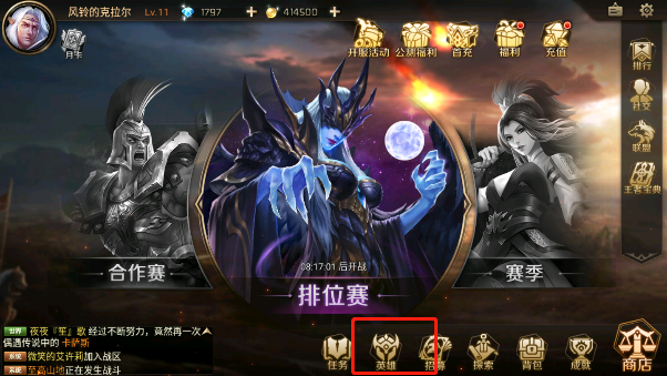 (2)首先进入到游戏中高的主页面大厅为止,点击最下列菜单栏的“英雄”按钮,在里面找到并点击对应英雄。在等级账号等级达到16级后,点击兵种然后选择兵种即可进行更换。