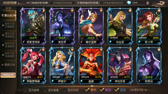(3)蓝色英雄:不过初期的英雄池比较浅,因此也可以选用一些蓝色英雄过渡使用,不过不要过多的培养,过渡就够了。