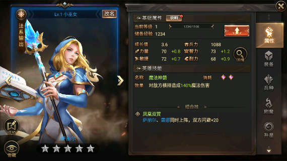2、萨丽尔:前期便可以培养,后期也很厉害。配合组合技或升星有了闪避后,可放在前排,否则站后排。推荐使用奥术师兵种。