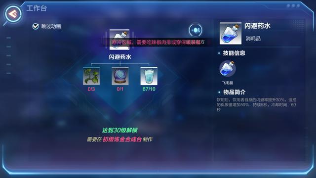 当玩家到达26级的时候,便可以生产制造暴伤药水与闪避药水。暴伤药水运用后在持续时间内能够提高百分之百的暴伤。